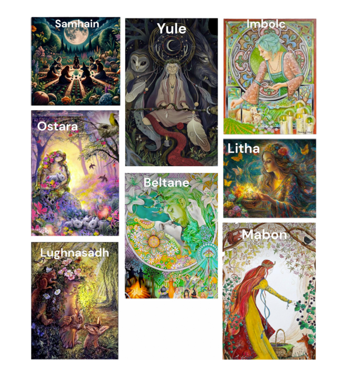 - Beltane: 1 de mayo. Para dar la bienvenida a la época estival celebramos esta festividad. En esta ocasión nos enfocamos en trabajar el amor, la fertilidad, hacer cambios de vida y cosechar lo sembrado.